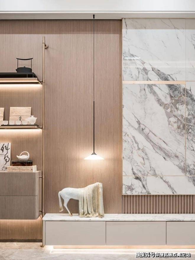 为此项目精选钢木复合门、臻选雅艺壁布、自然木饰面、全景一体化岩板背景墙等精奢材质,搭配充满仪式感的氛围灯带、打磨移门、踢脚线、过门石等每一处细节。同频全球当代极简审美的艺术美宅呼之欲出!
