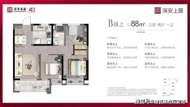 现在深业·深安上居建面约88㎡户型就实现3房功能性,建面约98㎡3房户型更实现主卧套房设计!既满足市场主流需求,又带来进阶改善品质。深安上居售楼处电话:400-8787-740