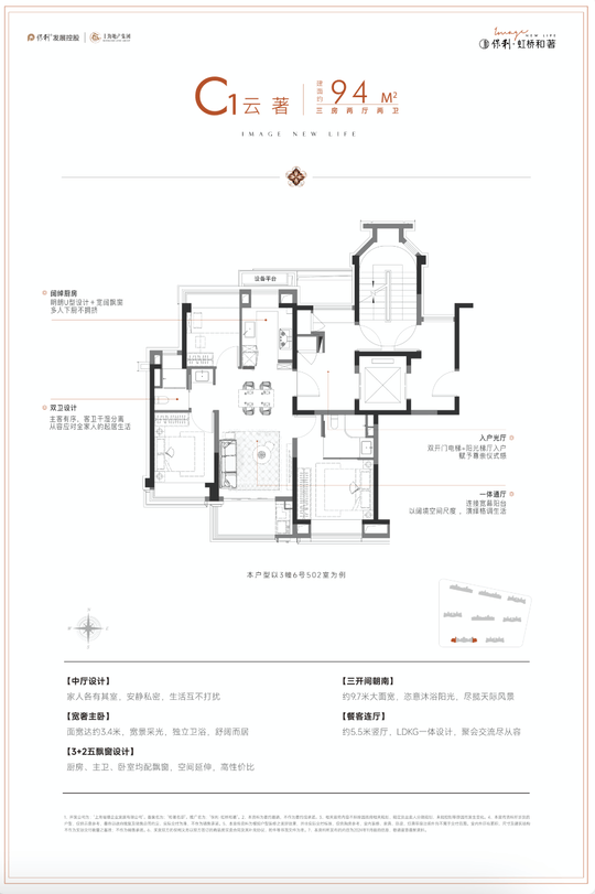 项目总建筑面积约6.89万平方米,规划有8栋17-18层的高层住宅,共598户。主力户型为建面约94-128㎡的三至四房,得房率高达85%,空间利用率远超同价位竞品。户型设计注重采光通风与功能分区,如94㎡三房采用南北通透布局,104㎡三房实现LDK一体化设计,128㎡四房则配备四开间朝南与双阳台,满足不同家庭结构的需求。
