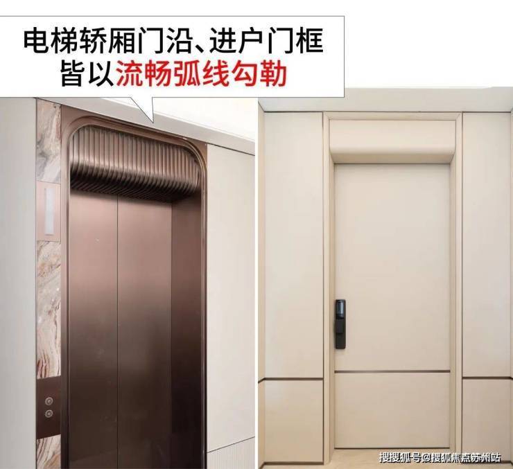 电梯轿厢门沿、进户门框皆以流畅弧线勾勒,为业主日常等电梯和归家增添几分优雅。