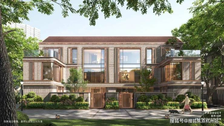 例如,在社区入户,目前已经完美呈现出来的,有强烈视觉冲击的立面大量的红砖、红洞石及大面积的落地弧形玻璃搭配的相得益彰,整个门头既有厚重的历史感,又不失极简主义的现代美。