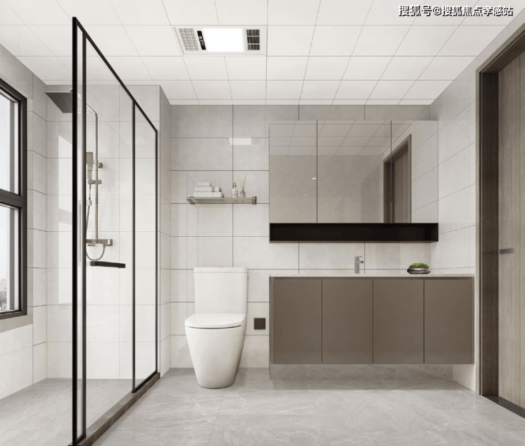 卫浴:大尺寸台下盆防溅水,镜箱内预留吹风机架、抽纸架……