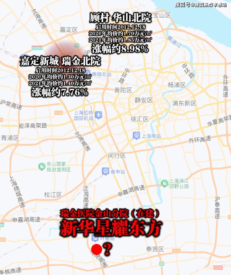 嘉定新城和顾村在大型三甲医院落地运营后房价都有一定上涨。