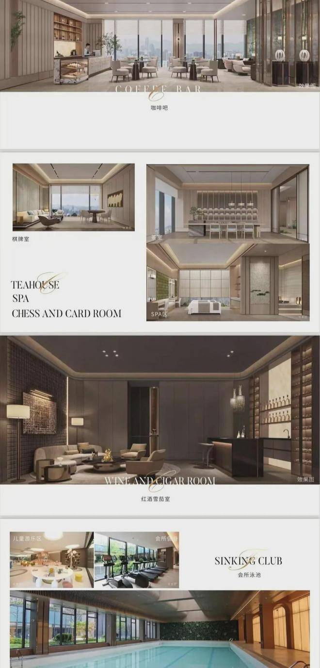 公馆商务会所: 则有咖啡区、品茗区、spa区、红酒雪茄室、棋牌室、多功能室等,能满足户主休闲娱乐和商务社交需求!