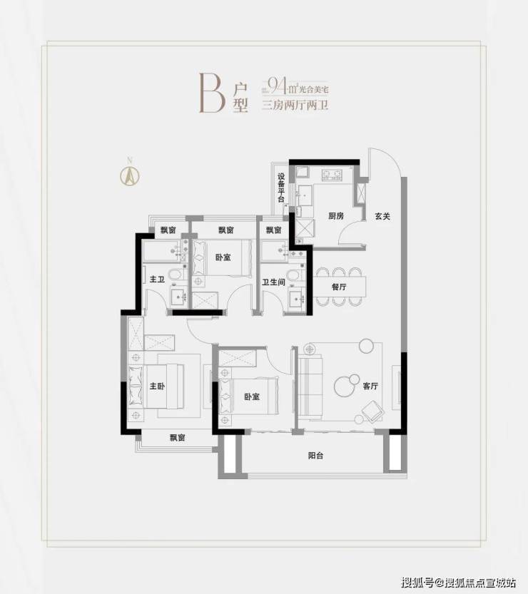 高层建面约94㎡3房2厅2卫