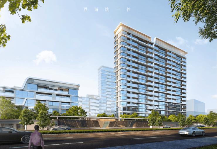 大师团队联袂操刀,敬献当代先锋美学地标建筑设计美学,让 浦更;立面以水平流线型线条为设计语言,柔美中带有力量。