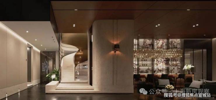 高定公区,重塑海派归家史诗;隐奢门庭:社区大门以古琦黑奢石手工锻造弧形幕墙,将珠宝镶嵌工艺融入建筑肌理;