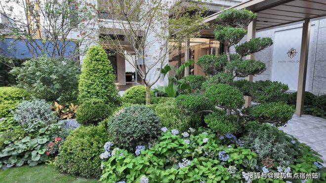 通过前厅步入社区内部,庭院景观也做到实景呈现,金隅以“海派繁花”为主题,设置了不同风格的休憩节点,种植了桂花树、老榆树、大乌桕等名贵树种。