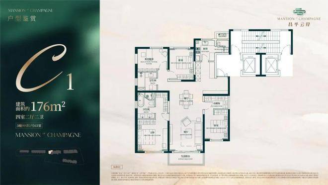 建面约176㎡4房2厅2卫户型