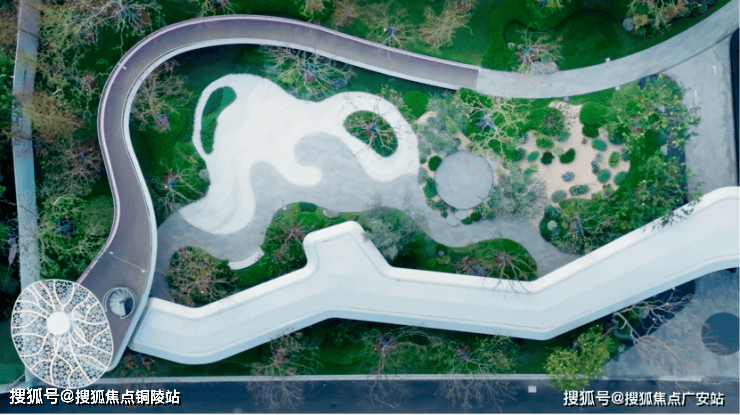 社区内约10000㎡立体都心园林,以英伦名园邱园、希德寇特花园为灵感,以“三轴五园”勾勒“东韵西境”。