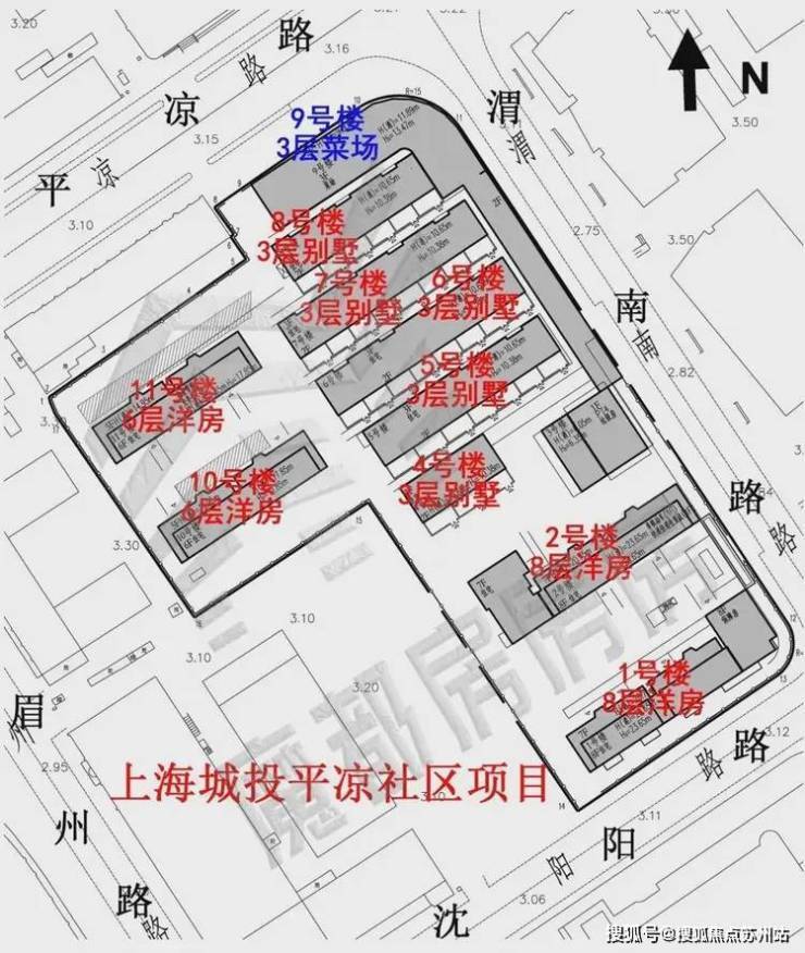 「兴华里」(大桥街道94街坊)地块四至范围, 东至渭南路,南至沈阳路,西至02F1-02、02F1-03地块,北至平凉路。项目距离上海城投上一个板块内住宅项目高阳新里仅一个路口街区之隔,直线距离200米左右。