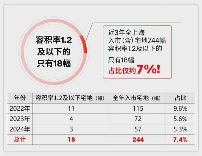 殊不知,真正的赢家早已在土地出让时定局——全上海1.2以下容积率宅地,正在走向绝版!一组数据揭开上海楼市的残酷真相: