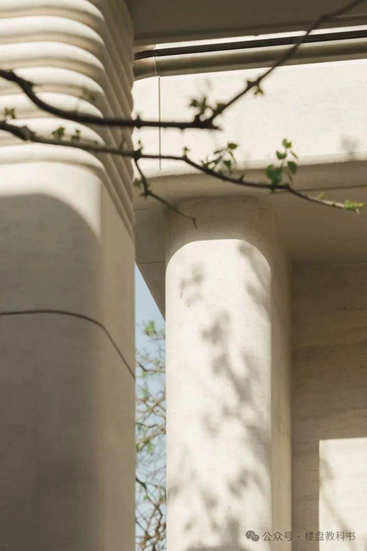 项目立面主材采用沙漠风与白海棠石材,视觉温润,同时石材立面更耐用,经受得起风吹雨打,历久弥新。