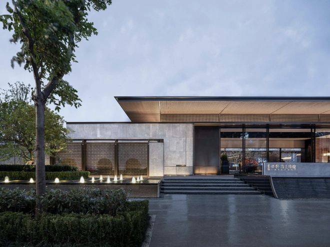 大面通透玻璃外衬定制龙鳞纹金属网的双层结构,将国画中框景的手法运用独到,在达到朦胧美的同时,为归家创造一定的私密性和独特的东方礼序感。