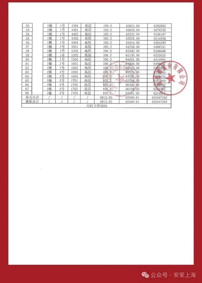 一房一价表: