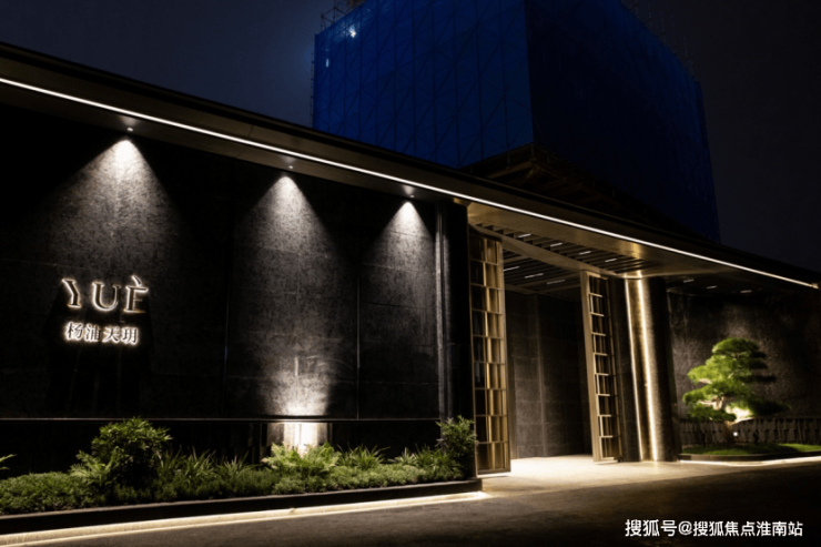 在社区门头上,采用麻省理工学院同款人文高定门头,上海少有的长约35⽶、高约5.1⽶酒店式迎归尺度,并引入价值不斐的名贵黑松、范思哲黑石材与茶色定制铝板,以秀于外隐于内的精神表达,给予每一位业主的尊贵仪式感。