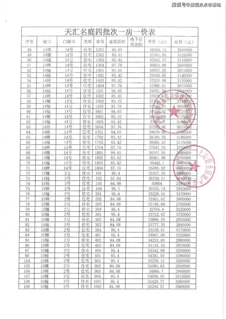 上期一房一价表发布: