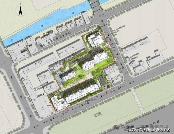 其中集中绿地率不低于 10%,利用高层建筑退界及中央景观设置公共绿地,公共绿地连接小区绿化,使其具有活动与通行双重功能,并作为本地块的集中绿地使用。