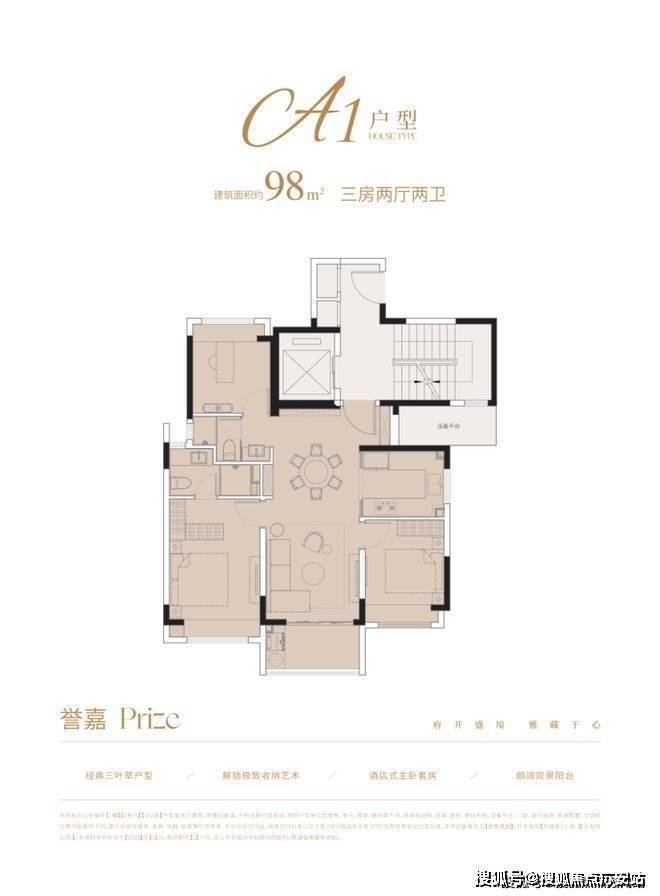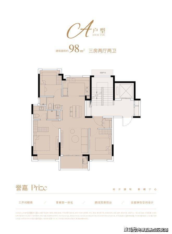 户型特色:82㎡户型三开间朝南,主卧套房配步入式衣帽间;120㎡户型约5.5米面宽横厅连接景观阳台;144㎡户型南北通透,约6.8米双联阳台。