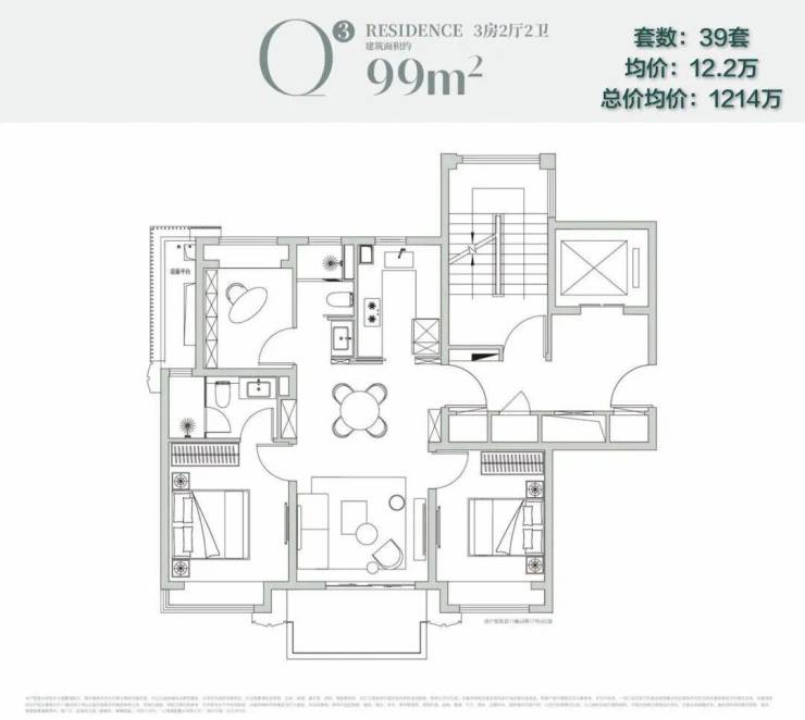 这个户型属于非常实用的一类产品,在四房功能性保证的情况下,套均总价控制在了1500万以内,均价不到11万/㎡,性价比也很高。