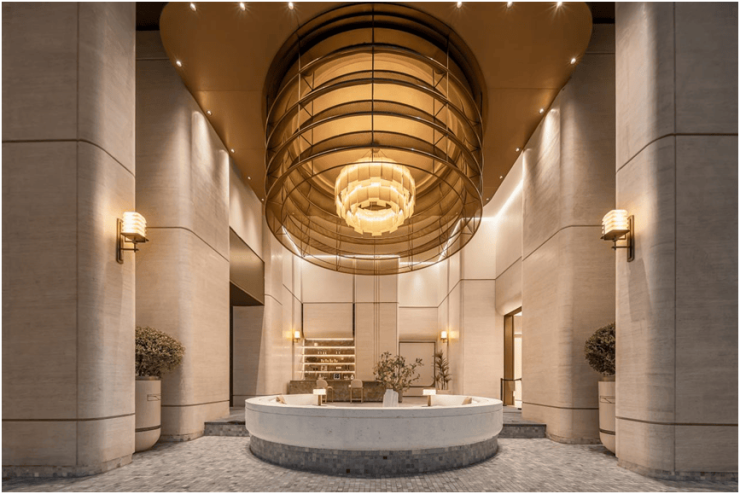 尊享超高规格的公区动线,总高约13.7米的双层甲板视觉归家大堂、独立车马院、引入自然天光的阳光地库。