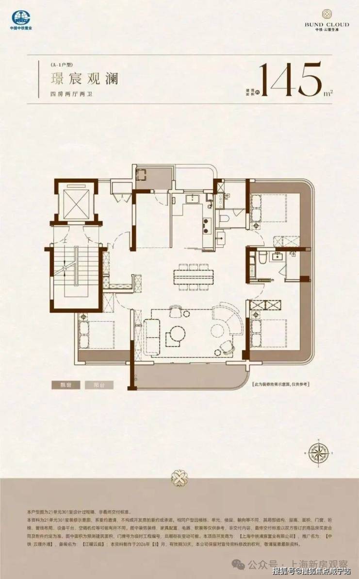 注:中铁云璟外滩,杨浦滨江“九宫格”低密滨江纯洋房墅区,由央企中铁置业倾力打造。主推建面约115-145㎡洋房及约200-209㎡叠墅。容积率仅1.8,距黄浦江直线约700米,抬板设计配下沉式庭院及约1000㎡会所。以上信息以案场最新公示为准。