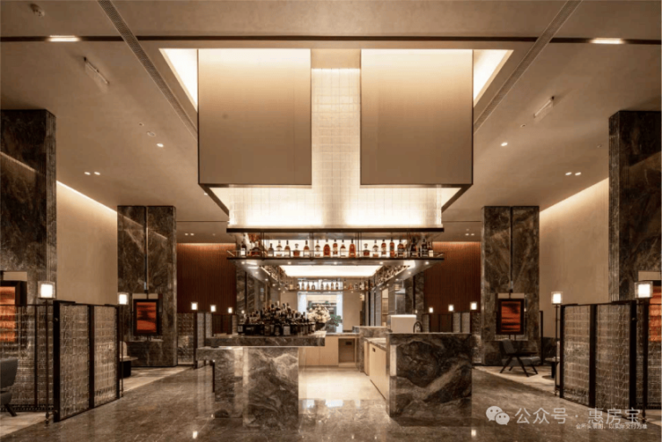 ▫ 文人精神客厅:「会客茶室」的茶炉煨着陈年普洱,「休闲书吧」的楠木书架陈列着艺术典籍;「雪茄室」畅谈跨越世纪的版图,「下沉庭院」的松风映月与室内空间构成时空对话。