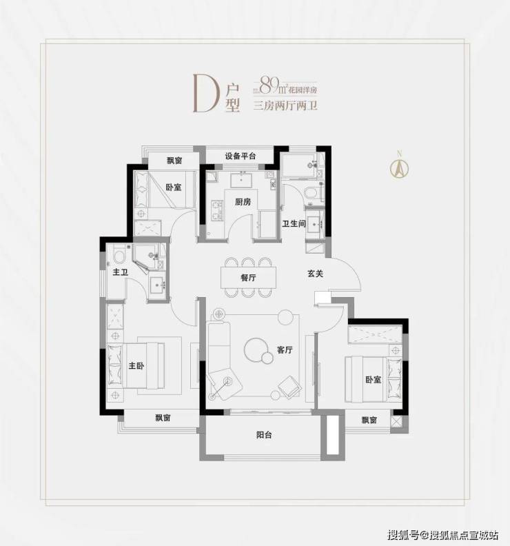洋房建面约89㎡3房2厅2卫