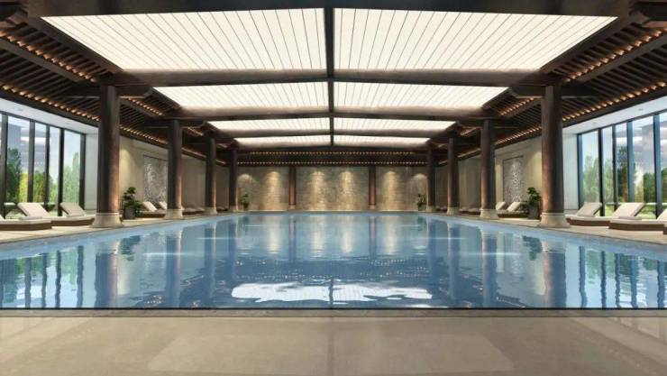 升级进阶后的海上院子会所以业主爱好作为出发点,打造室内泳池、多功能健身房、瑜伽室、儿童活动空间、贤书房、茶室、私宴厅、健康餐吧等丰富休闲场景,对位名流圈层的高阶兴趣与身份归属感,形成家庭生活与社交的“第三生活空间”,提纯更高品质的生活日常,为入住海上院子的高净值人士提前擘划社交圈层。