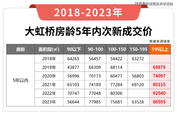 另一方面,小编也统计了链家上大虹桥房龄5年内次新的成交数据。