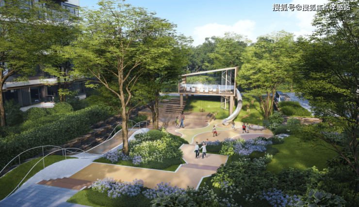 得益于低容积率,建筑排布少,楼间距大,项目能铺就更丰富的景观园林。