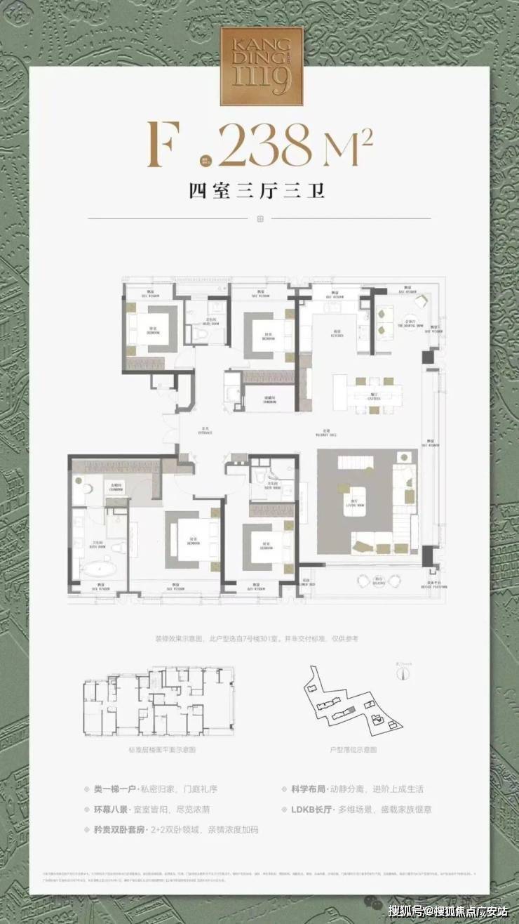 高层-238m²四房:4100-4600【项目概述高定元年玺系之上人文定制壹拾玖,出于玺系,上成匠著。招商荟萃豪宅的能力与造诣,择址梧桐浓荫掩映下的老静安,在家族原址倾力营造的人文定制级作品,以一座康定壹拾玖,建筑面积约120-240㎡人文定制作品,再续都会人居的传奇【招商品牌】招商11城14项目全系高品质创