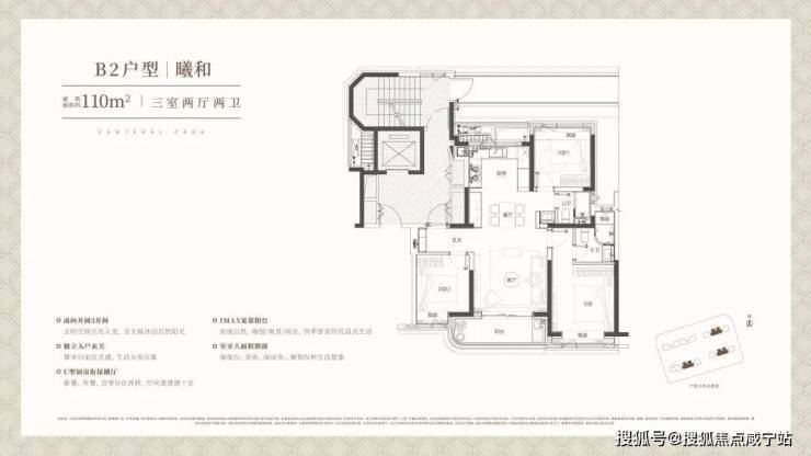 建面约110㎡横厅户型,整体南向面宽做到了约12.3米,超大南向面宽,带来超大空间体验和充足通风采光。