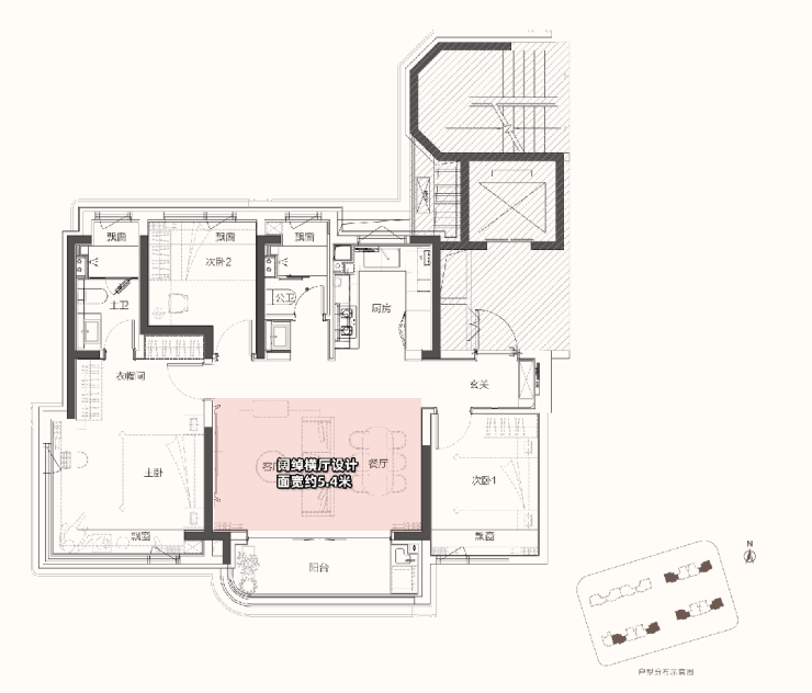 横厅面宽来到了约5.4米,直连IMAX级巨幕阳台,享受270°景观视野,室内通风采光上佳。