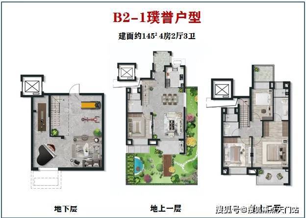 1、建面约123-145 m²叠墅