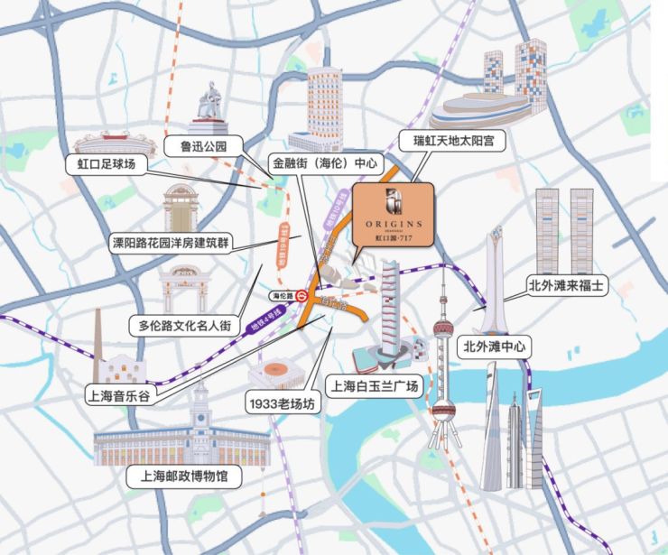 作为“世界会客厅”的生活源心,虹口源·717坐拥北外滩引擎核心、瑞虹摩登都心、虹口源人文源心,三者交汇形成前所未有的城市价值复合扇面。这里不单是生活、商业与产业的聚合体,更是上海内环黄金三角内,唯一依托TOD理念成片开发的高端住区。厚重的历史底蕴与前沿的摩登气象于此激荡融合,百年人文肌理与国际都会繁华尽藏方寸之间。