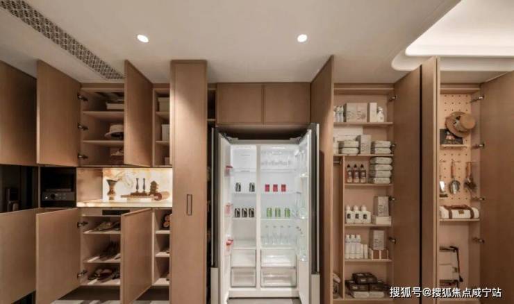【招商臻境售楼处电话:400-1010-064】的收纳表现向来优越,而此次源上升级之后,舒适实用性再度上升一个大台阶。比如入户部分的玄关柜、墙柜、餐边柜等,都做了整排一体化。前期同样使用大受好评的S墙设计依旧得到延续,冰箱可以平整嵌入,大方美观。
