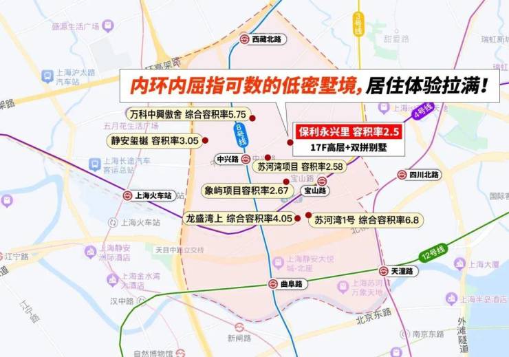 从保利·永兴里出发,到人民广场(2.3公里)、到苏河湾商圈(900米)、到外滩、陆家嘴(3公里),市中心更便捷、更繁华、更热闹的高能城市配套,都是触手可达!(以上都是直线距离)。