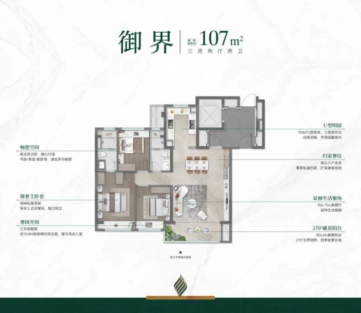 107㎡跃享精装“大平层”,约10.8m跃级南向采光+约28㎡ 通透方厅+U型明厨,真横厅不将就;奉贤龙湖御湖境官方售楼处电话:400-9966-940☎️☎️☑️☑️