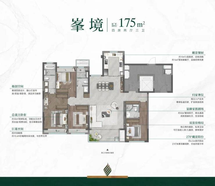 项目户型面积段约107-175㎡,全户型南向飘窗改造交付,带来越级空间享受。其中,被誉为”传世孤品“的175㎡峯境户型,约15.4M巨幅南向采光面+央景楼王视野+可定制空间,全盘仅此28席,堪称奉贤的终极改善优选!