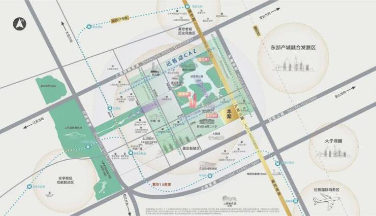 项目经由沪嘉高速可以快速抵达中环进入市区,经由沪翔高速直连外环,经由沈海高速/嘉闵高架可以迅速通达大虹桥,完善的交通路网,出行四通八达。