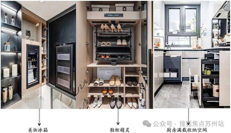 又如卫生间干湿分离,镜柜自带置物架与美妆冰箱,护肤品有序冷藏,晨起焕新更显精致。可以说,这套户型用隐形收纳艺术,成为百平内功能型三房的优选!