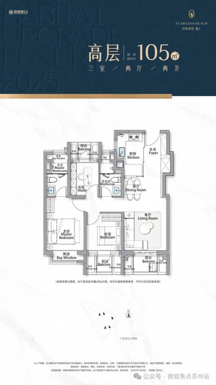 首先,是实用面积的跃升。建面约105㎡户型的三个阳台只算一半面积,花池不算面积,主卧自带非承重结构的飘窗,折算下来的空间是实打实的,远超市面上同面积段其他产品!