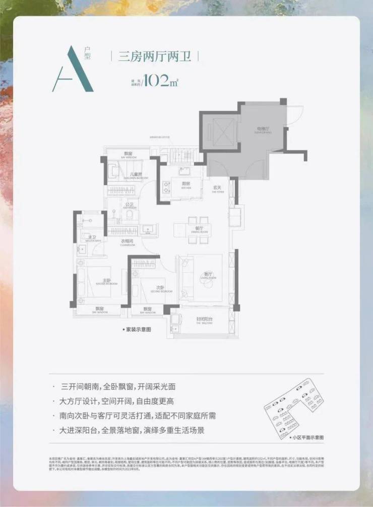 建面约102平 3房2厅2卫(边户)