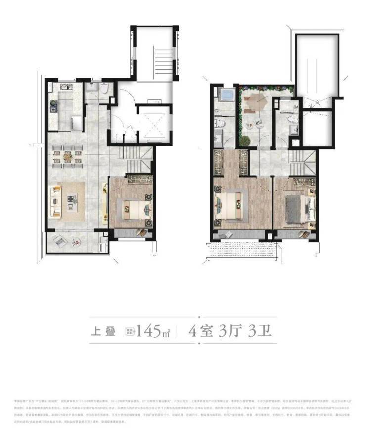 再来看叠加的附赠空间,各方面均不及竞品国贸海上原墅,比如地下室层高(本案5.3米、国贸5.65米)、挑空空间(本案没有、国贸下叠赠送约20㎡)、露台(本案上叠赠送北露台、国贸赠送南北2个露台)。