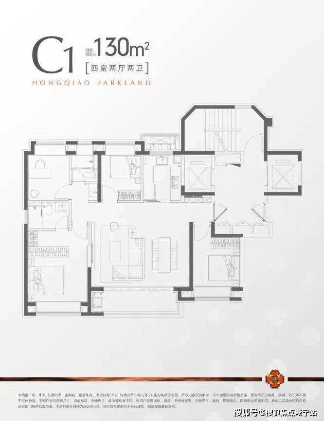 总价仅约735万起的建面约130m²四房户型,可以说是外环外改善置业王炸产品!