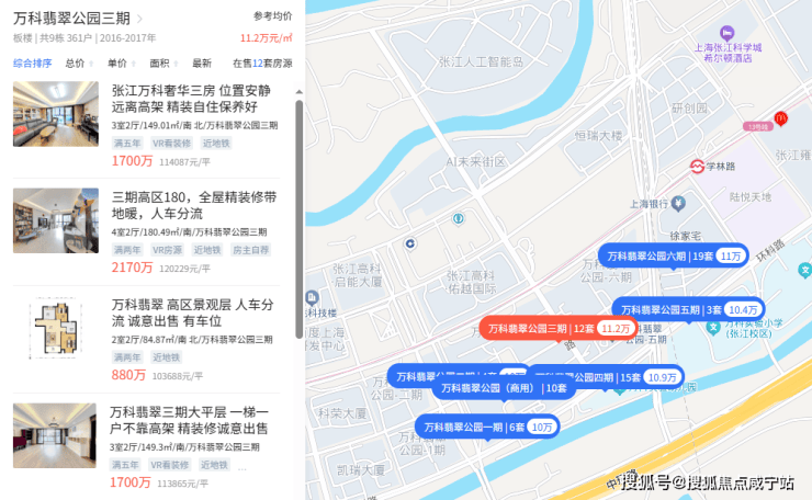 说这话是有依据的,万科翡翠公园就是一个典型案例,被张江园区包围,是张江高知人群改善置业的香饽饽,你再看一下它现在的价格: