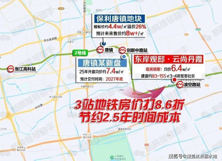 「东岸观邸·云尚丹霞」紧邻2号线凌空路站(约800米),7站直达张江,13站畅达陆家嘴,虹吸上海顶层金融中心与科创中心超百万都市菁英人群,未来即使在次新市场也有强势托底。