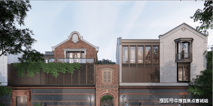 建筑设计:产品有石库门、红砖、青砖三种风格,采用清水砌筑、元宝缝等非遗工艺,保留了门头、山墙、转角楼等石库门元素,同时运用水刷石工艺,呈现历史与现代的和谐共生。