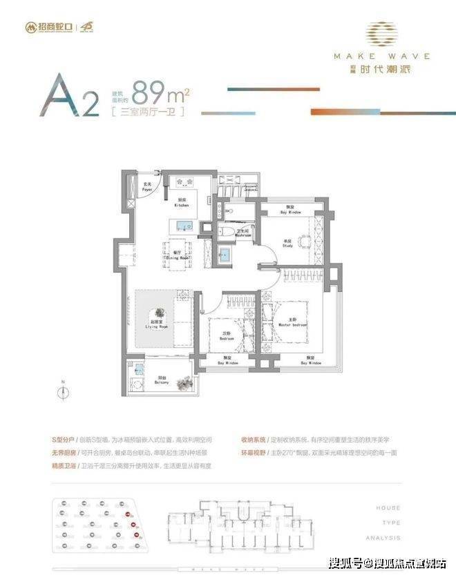 建面约89㎡3房户型:东边套主卧配置约270°双向采光飘窗、S墙设计,主力总价仅约450万级,首付约90万起!招商时代潮派售楼处电话☎:400-8855-420【售楼热线】✔✔看房有优惠。